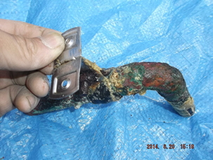 腐食した配管はこのようになっていました。(写真右)