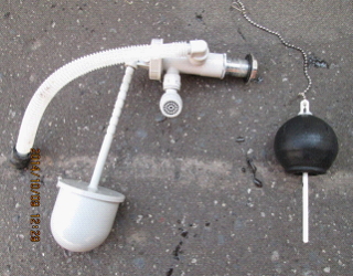 タンク中央に見える、浮き球のような部品。これはボールタップといって水位により給水の調整をするという役目を持つ部品。